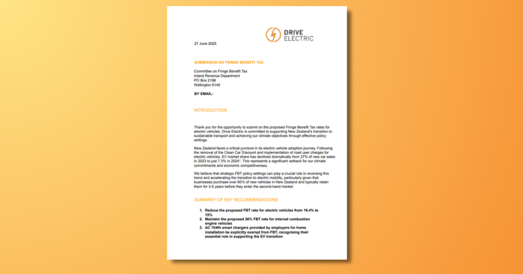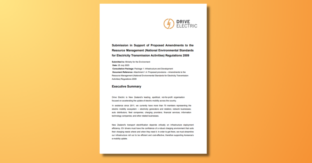 In July 2025, the Ministry of Business, Innovation and Employment’s (MBIE) opened consultation on a range of options to encourage the uptake of smart EV chargers. These included: Drive Electric’s Submission Drive Electric submitted in support of Option 4A (smart functionality with labelling), as it best balances our goals of accelerating EV uptake while ensuring […]